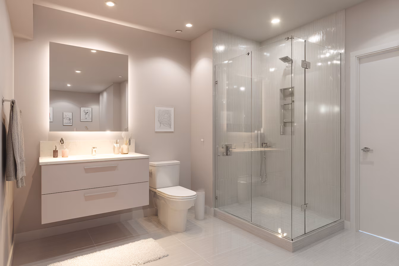 Modern bathrooms prioritize open visual space and clutter-free design.